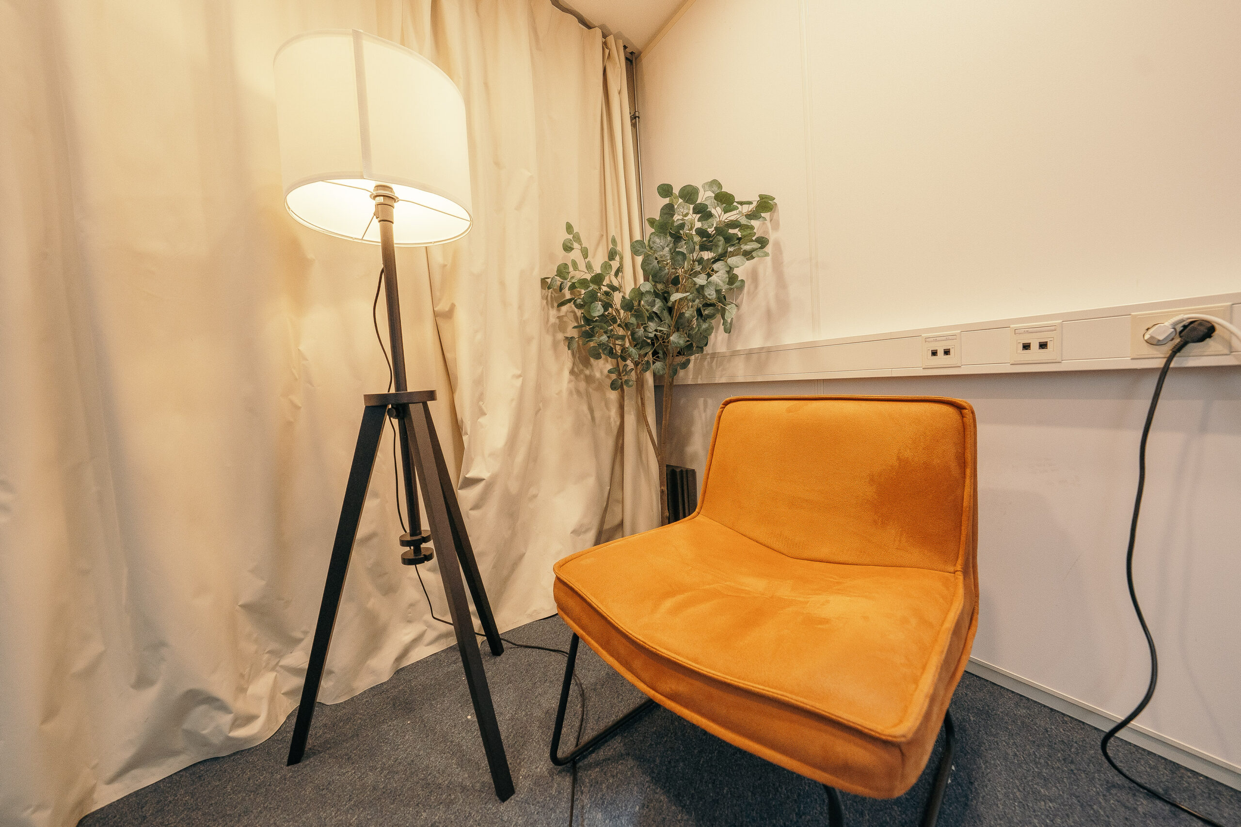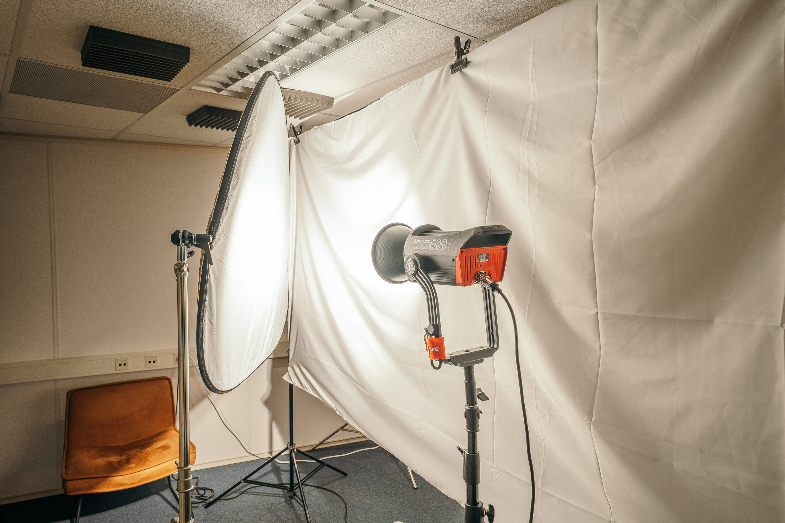 The studio is equipped with a large selection of high-end Amaran (constant light) professional lights, allowing flexible setups for both video and photography without bringing your own lighting gear.